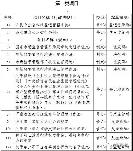 國家市場監(jiān)督管理總局2019年立法工作計劃