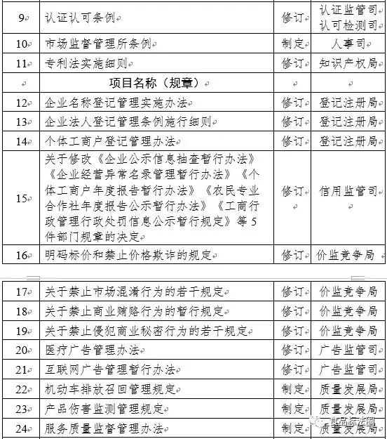 擬廢止《關(guān)于商品和服務(wù)實行明碼標(biāo)價的規(guī)定》《禁止價格欺詐行為的規(guī)定》《醫(yī)療器械廣告審查辦法》《醫(yī)療器械廣告審查發(fā)布標(biāo)準(zhǔn)》《藥品廣告審查辦法》《藥品廣告審查發(fā)布標(biāo)準(zhǔn)》《食品廣告發(fā)布暫行規(guī)定》《廣告語言文字管理暫行規(guī)定》《社會公正計量行(站)監(jiān)督管理辦法》《專利代理懲戒規(guī)則(試行)》《專利代理人資格考試實施辦法》《專利代理人資格考試考務(wù)規(guī)則》《專利代理人資格考試違紀(jì)行為處理辦法》等部門規(guī)章。