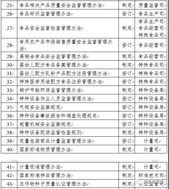 1.為加強食品安全監(jiān)管,制定《冷藏冷凍食品安全監(jiān)督管理辦法》(食品經(jīng)營司起草),修訂《食鹽質(zhì)量安全監(jiān)督管理辦法》(食品生產(chǎn)司起草),《食品安全抽樣檢驗管理辦法》(食品抽檢司起草);推進(jìn)《食品安全監(jiān)督檢查管理辦法》(食品生產(chǎn)司牽頭起草,食品經(jīng)營司、特殊食品司配合)、《食品標(biāo)識監(jiān)督管理辦法》(食品生產(chǎn)司起草)、《食用農(nóng)產(chǎn)品市場銷售質(zhì)量安全監(jiān)督管理辦法》《展銷會食品安全監(jiān)督管理辦法》(食品經(jīng)營司起草)的制修訂。