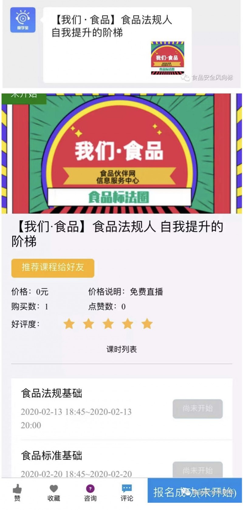 【我們•食品】系列課程由食品伙伴網食品安全合規事業部推出,涵蓋線下課堂和線上課堂。自2018年4月,線上課堂在“食品標法圈”直播頻道開播,與企業同行深入交流食品相關標準法規修訂進展,及法規體系更新要點和應對方案,分享多年研究經驗,為企業答疑解惑。經過1年多的發展,獲得了全國各地網友的關注和好評。