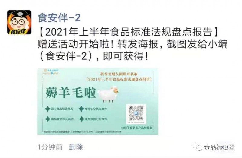 【2021年上半年食品標準法規盤點報告】贈送活動開始啦!轉發海報,截圖發給客服,即可獲得!